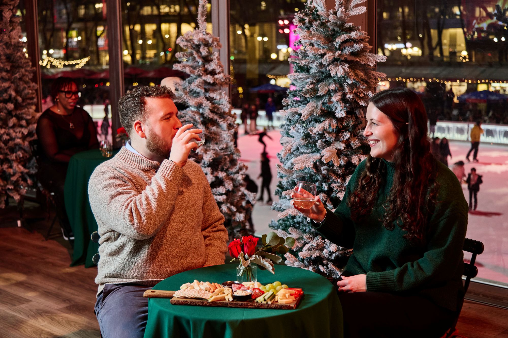 Experience Overlook Lounge, a Winter Village romantic hideaway offering sweeping views of The Rink amid the Midtown skyline. Reserve a table and enjoy a bottle of wine, festive bites, and live music as you take in the magical vista of Winter Village from our premier glass box venue. Upgrade to open bar is available.