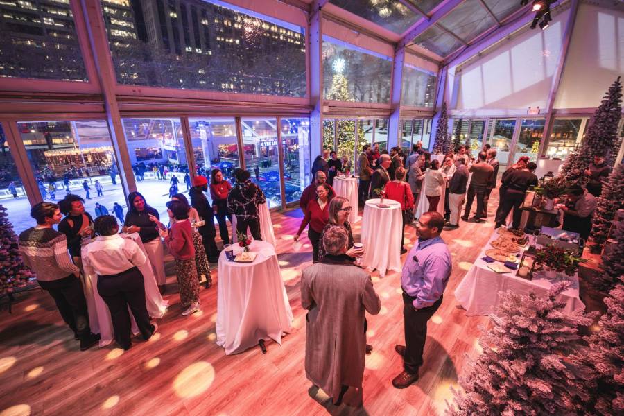 Located in the heart of New York City, Bank of America Winter Village features an expansive skating rink, holiday market, festive bar and food hall, and two premier private event spaces: Overlook and Polar Lounge.